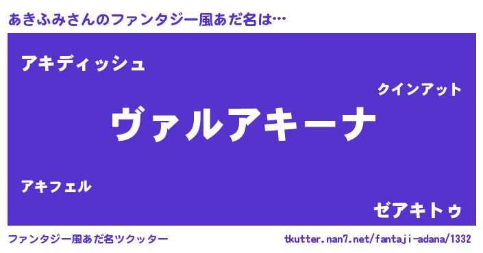 | 男性向けラノベタイトル風あだ名 | 『魔弾の王とあきふみ』 |