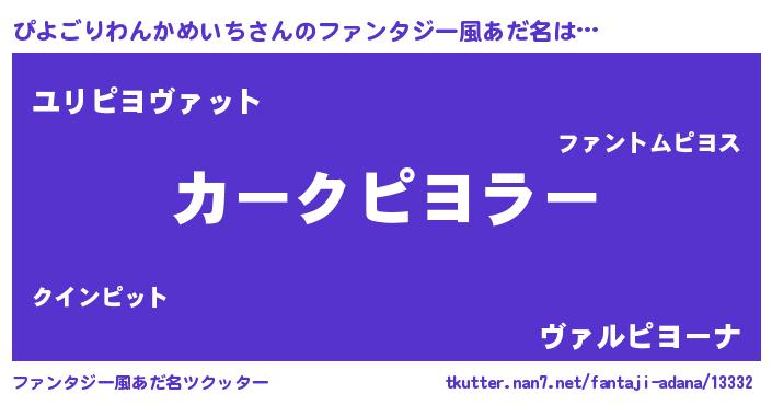 | 伝説のあだ名 | 『覚醒した僧侶ぴよごりわんかめいち』 |