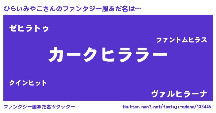 | ヒーロー風カッコイイあだ名 | 『究極戦士ヒライミヤコ』『仮面ヒラダー』 |