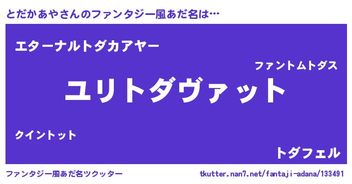 | 男性向けラノベタイトル風あだ名 | 『とだかあや~年齢イコール彼女いない歴の魔法使い~』 |