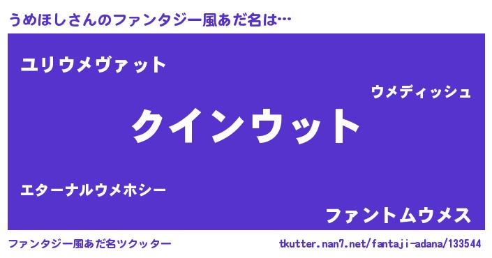 | ヒーロー風カッコイイあだ名 | 『愛の使者うめほし』『暗黒騎士ウメ』 |