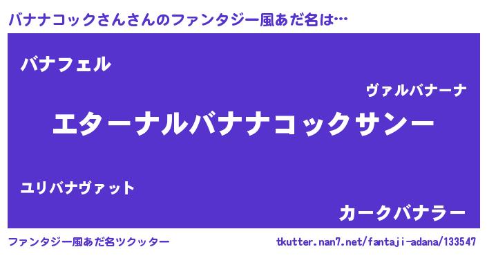 | 意味不明あだ名 | 『バナナコックさんフォーエバー』 |