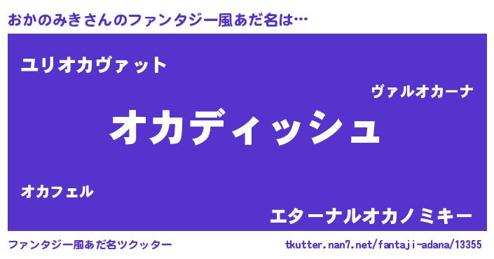 | 伝説のあだ名 | 『古より伝わる暗殺者おかのみき』 |