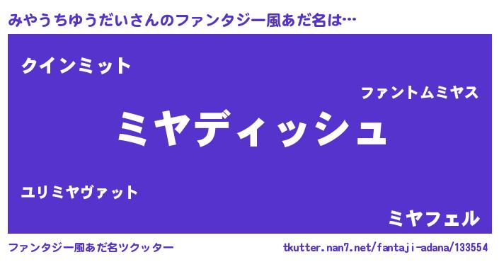 | ヘコむあだ名 | 『みやうちゆうだい(笑)』『みやもー』 |