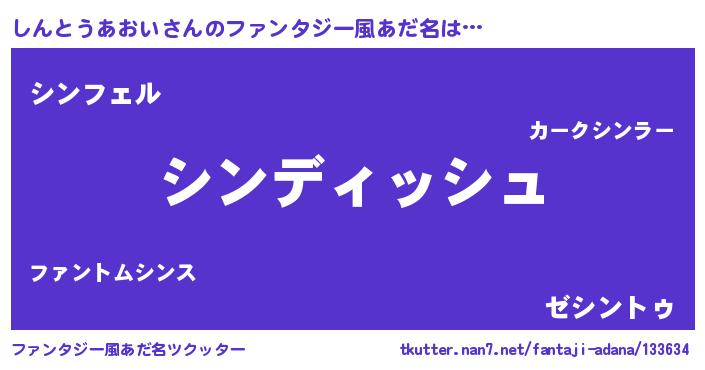 | ヘコむあだ名 | 『しんとうあおい(遠い目)』『しんっふぃ~』 |