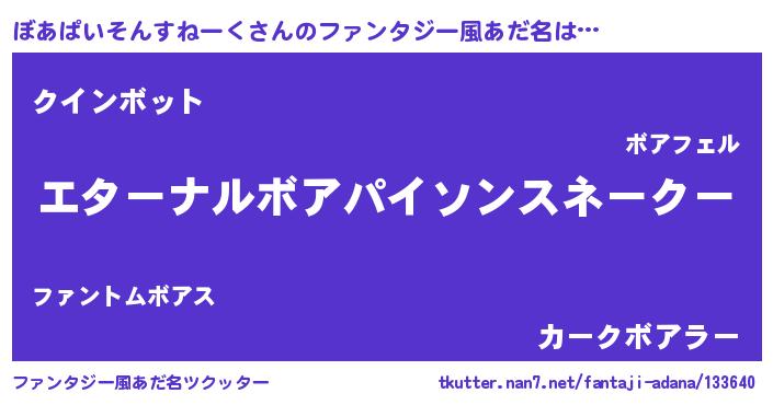 | 意味不明あだ名 | 『ぼあぱいそんすねーくフォーエバー』 |
