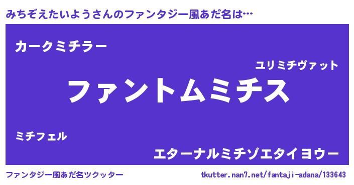 | 男性向けラノベタイトル風あだ名 | 『みちぞえたいようの嫁は女の子じゃないと思った?』 |