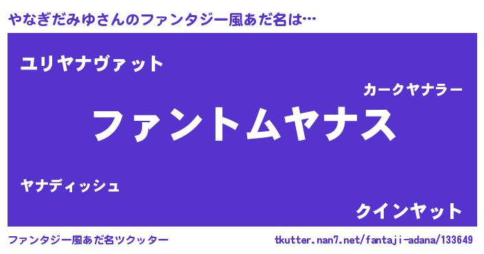 | ポケモン風あだ名 | 『ヒヤナギダミユ』『ヤナキング』 |