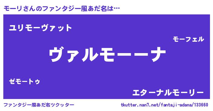 | 男性向けラノベタイトル風あだ名 | 『魔弾の王とモーリ』 |