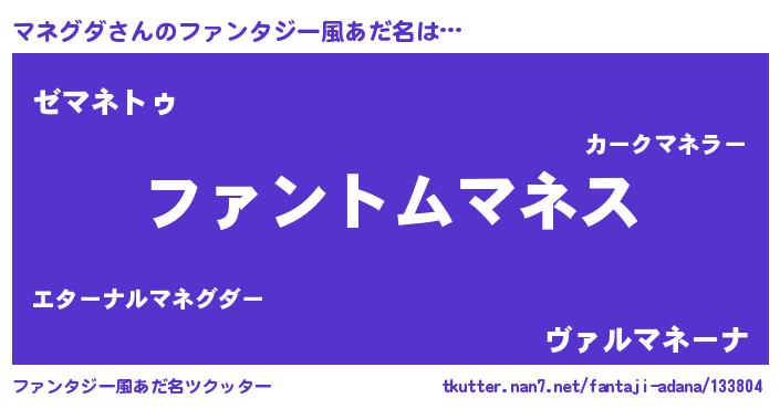 | 意味不明あだ名 | 『とにかく怪しいマネグダ』 |