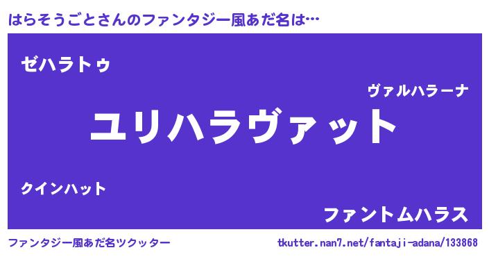 | ヒーロー風カッコイイあだ名 | 『超時空戦士ハラソウゴト』 |