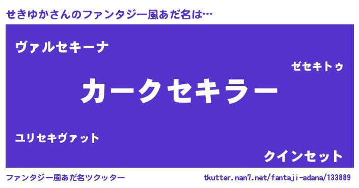 | 欧米人風あだ名 | 『せきゆか・ステッグマイヤー』 |