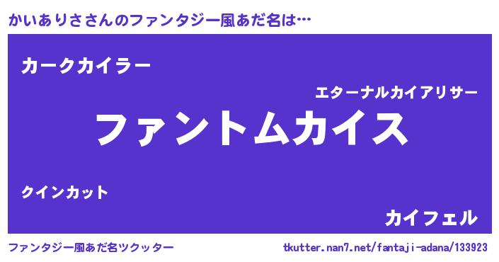 | ヒーロー風カッコイイあだ名 | 『暗黒騎士カイ』『スーパーカイアリサ』 |