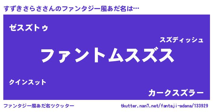 | ポケモン風あだ名 | 『ヒスズキサラサ』『スズセウス』 |