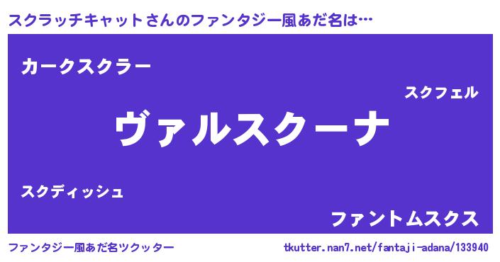 | 男性向けラノベタイトル風あだ名 | 『魔弾の王とスクラッチキャット』 |