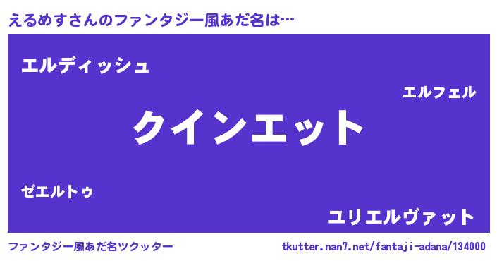 | 男性向けラノベタイトル風あだ名 | 『ノーゲーム・ノーエルメス』 |