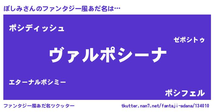 | 男性向けラノベタイトル風あだ名 | 『魔弾の王とぽしみ』 |