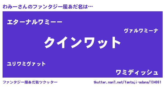 | 自動車の名前っぽいあだ名 | 『フィッワ』『ワスラー』『デミワ』 |