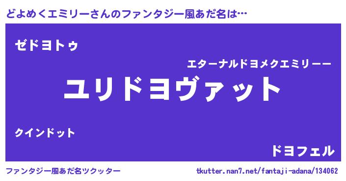 | 男性向けラノベタイトル風あだ名 | 『ドヨメクエミリースレイヤー』 |