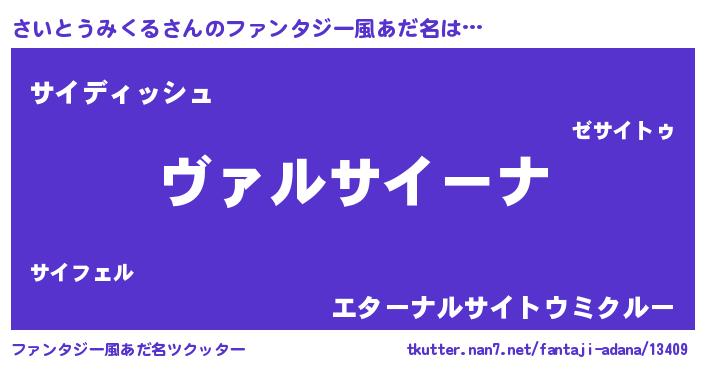| 意味不明あだ名 | 『住所不定無職さいとうみくる(41歳)』 |
