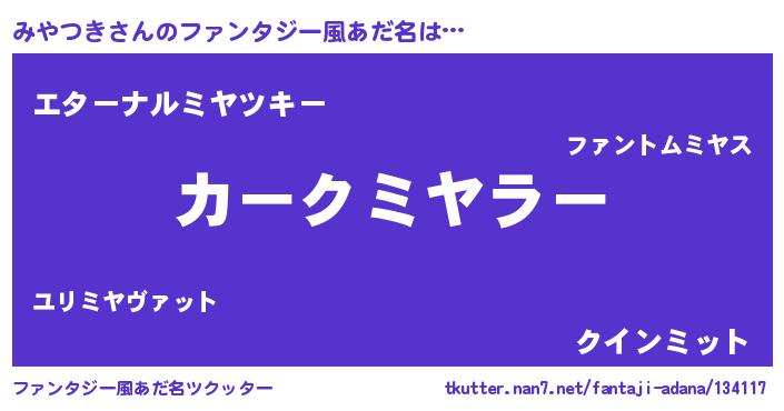 | 意味不明あだ名 | 『みやつきフォーエバー』『自称みやつき』 |