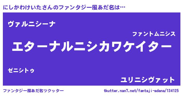 | 意味不明あだ名 | 『にしかわけいたフォーエバー』 |