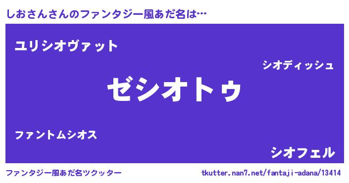 | 男性向けラノベタイトル風あだ名 | 『Re:しおさんから始める異世界生活』 |