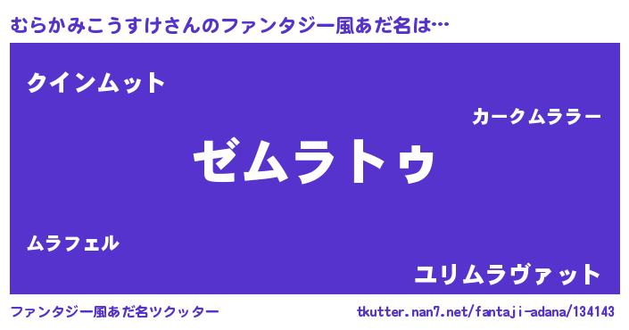 | 女子向けラノベタイトル風あだ名 | 『むらかみこうすけなんてお断りですっ。』 |