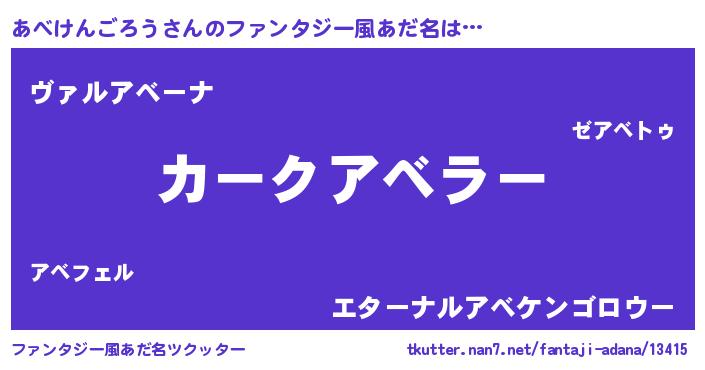 | 意味不明あだ名 | 『住所不定無職あべけんごろう(89歳)』 |