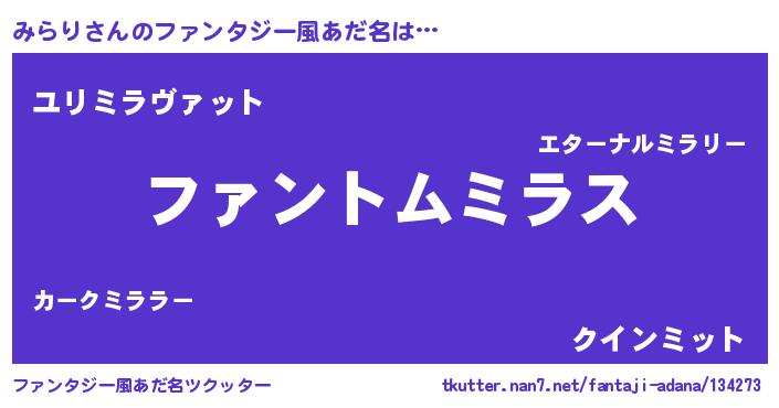 | 男性向けラノベタイトル風あだ名 | 『みらりの嫁は女の子じゃないと思った?』 |