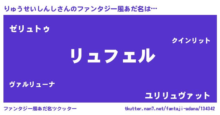 | 男性向けラノベタイトル風あだ名 | 『りゅうせいしんしの憂鬱』 |