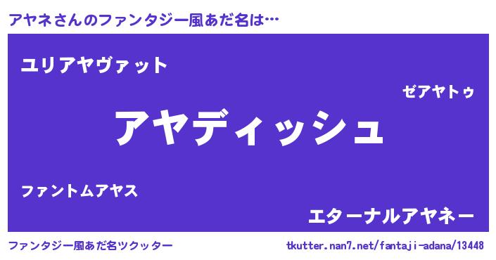 | 男性向けラノベタイトル風あだ名 | 『アヤネという概念が存在しない退屈な世界 』 |