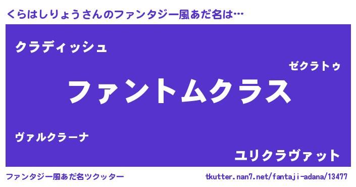 | 意味不明あだ名 | 『とにかく怪しいくらはしりょう』 |