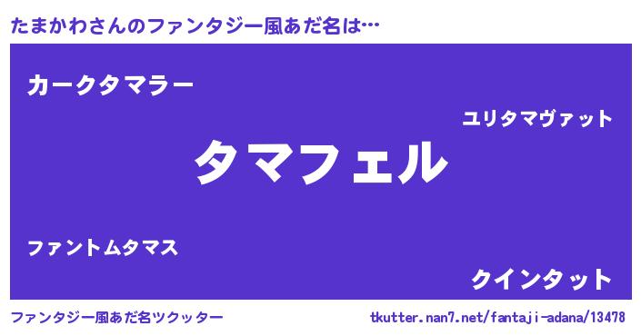 | ヒーロー風カッコイイあだ名 | 『スーパータマカワ』『幻影騎士タマ』 |
