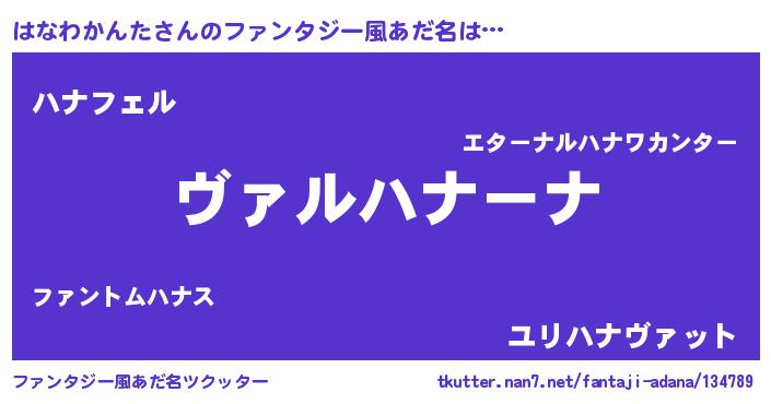 | 男性向けラノベタイトル風あだ名 | 『この素晴らしい世界にはなわかんたを!』 |