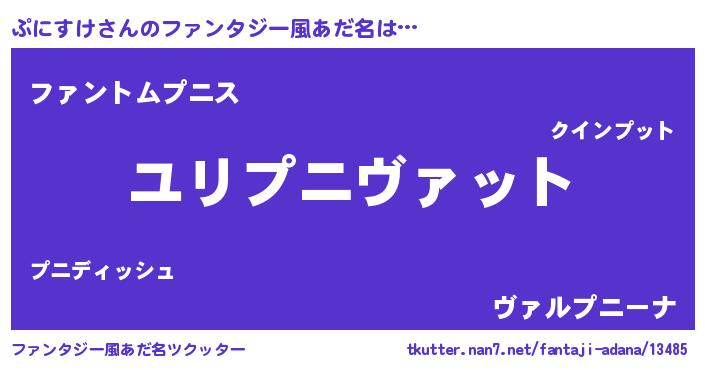 | 男性向けラノベタイトル風あだ名 | 『ぷにすけ~年齢イコール彼女いない歴の魔法使い~』 |
