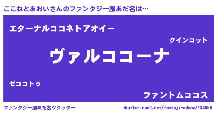 | 男性向けラノベタイトル風あだ名 | 『魔弾の王とここねとあおい』 |