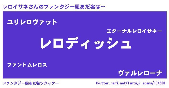 | 男性向けラノベタイトル風あだ名 | 『レロイサネという概念が存在しない退屈な世界 』 |