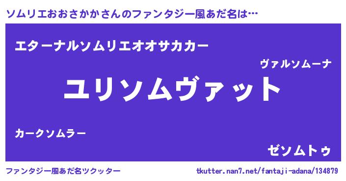 | 男性向けラノベタイトル風あだ名 | 『ソムリエおおさかか~年齢イコール彼女いない歴の魔法使い~』 |