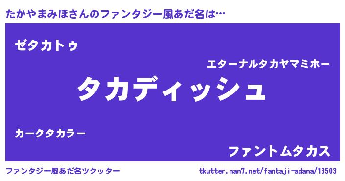 | ヘコむあだ名 | 『たかやまみほ(苦笑)』『たかっぺ』 |