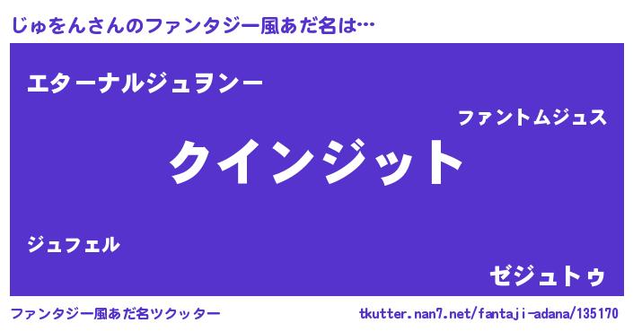 | ヒーロー風カッコイイあだ名 | 『慈愛の使者じゅをん』『銀牙騎士ジュ』 |