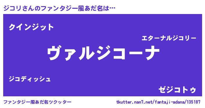 | 男性向けラノベタイトル風あだ名 | 『この素晴らしい世界にジコリを!』 |