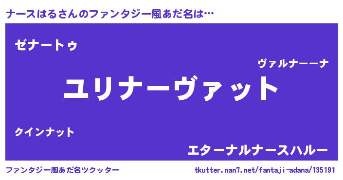 | 男性向けラノベタイトル風あだ名 | 『ナースハルスレイヤー』 |