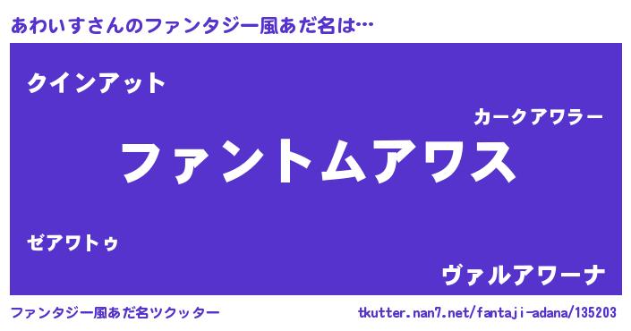 | 意味不明あだ名 | 『とにかく怪しいあわいす』 |