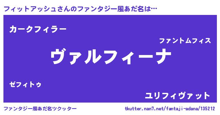 | 男性向けラノベタイトル風あだ名 | 『この素晴らしい世界にフィットアッシュを!』 |