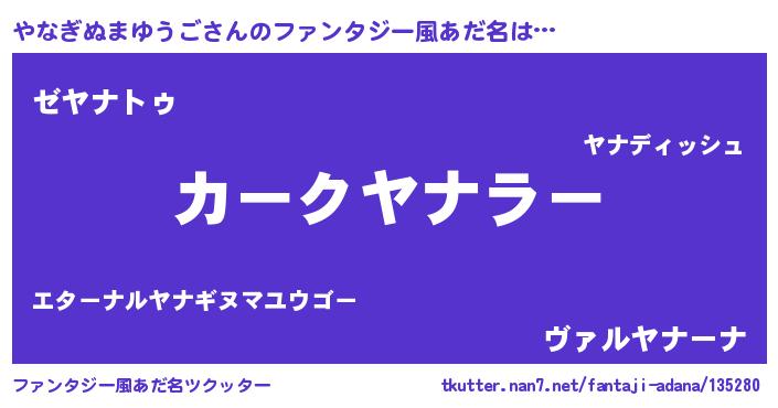 | 意味不明あだ名 | 『自称やなぎぬまゆうご』 |