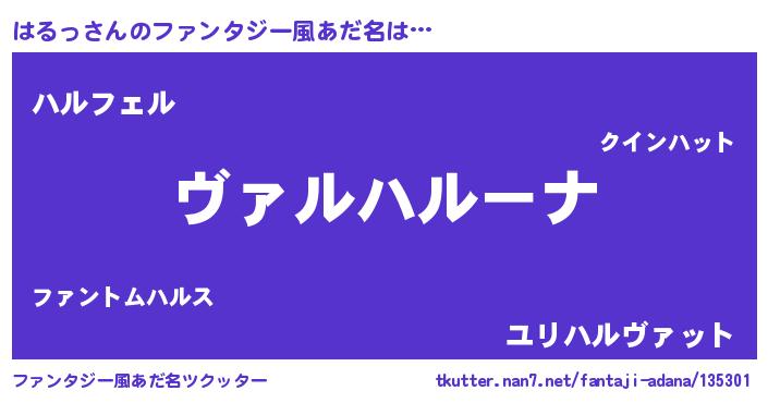 | 女子向けラノベタイトル風あだ名 | 『乙女ゲームの破滅フラグしかない悪役はるっに転生してしまった…』 |