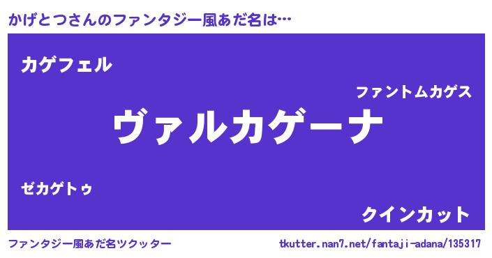 | 意味不明あだ名 | 『住所不定無職かげとつ(6歳)』 |