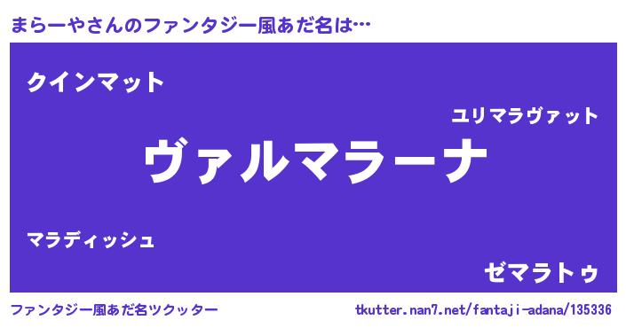 | 女子向けラノベタイトル風あだ名 | 『乙女ゲームの破滅フラグしかない悪役まらーやに転生してしまった…』 |
