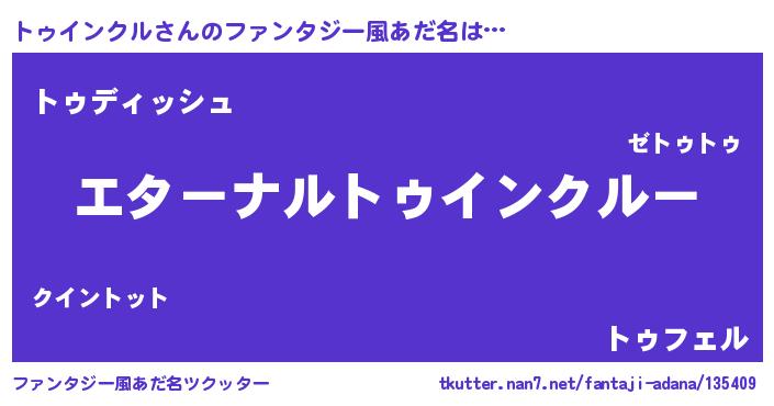 | 男性向けラノベタイトル風あだ名 | 『トゥインクルに滅ぼされるだけの簡単なお仕事です』 |